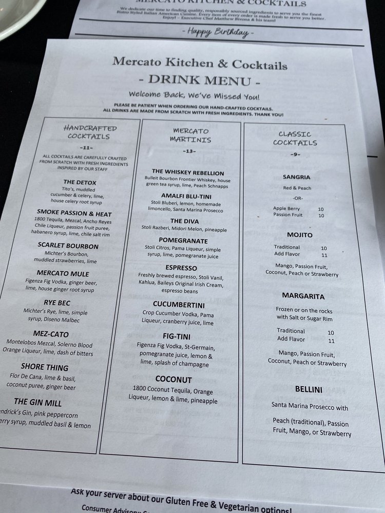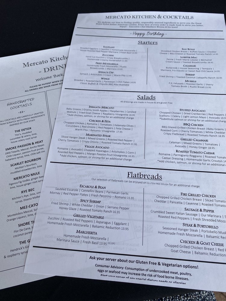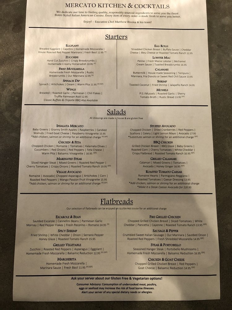 Mercato Kitchen & Cocktails is a vibrant Italian-American restaurant located in Massapequa Park, NY. Offering a variety of options for both vegans and vegetarians, Mercato is the perfect spot for a casual yet delicious meal. The menu features enticing salads like the BBQ Chicken Salad and Blackened Stuffed Avocado Salad, as well as flavorful flatbreads like the Bianco Truffle Flatbread and Fire Grilled Chicken Flatbread. For starters, don't miss out on the Calamari Classico with Fra Diavolo Sauce or the Coconut Shrimp with jalapeno ranch. With an extensive list of amenities including outdoor seating, happy hour specials, and even pool tables, Mercato Kitchen & Cocktails is a must-visit destination for a fun and flavorful dining experience.